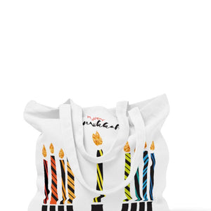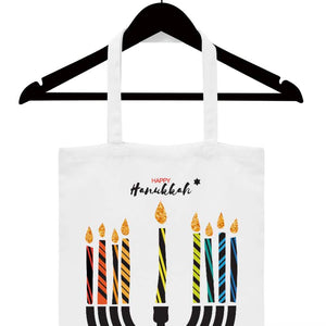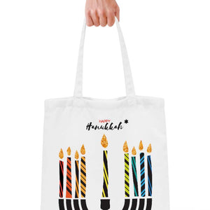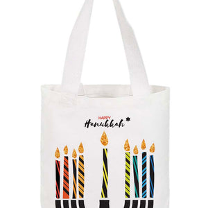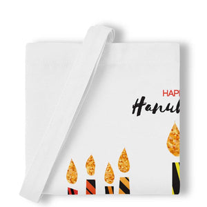 Let your holiday cheer shine with this stylish and sturdy Happy Hanukkah tote bag. Perfect for carrying your essentials, this bag features a bold, happy Hanukkah design that will bring a smile to your face. Show your Hannukah pride with this stylish and practical bag.