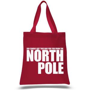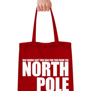 - Bold white lettering that reads: “Dio Candle got this bag for you from the North Pole”