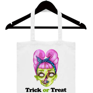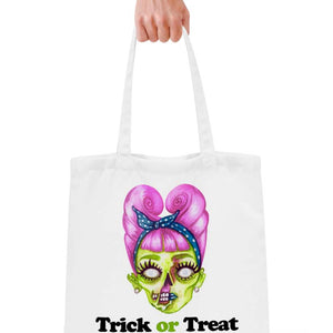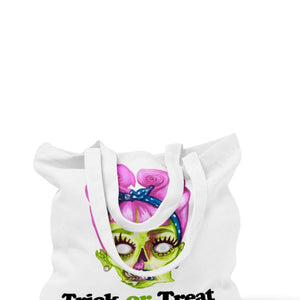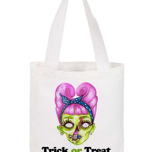 This Glam Zombie Trick or Treat Tote Bag will complete your Halloween look! The beautiful zombie design adds a spooky yet stylish flair to your holiday wardrobe. Perfect for collecting candy and any other tricks or treats.
