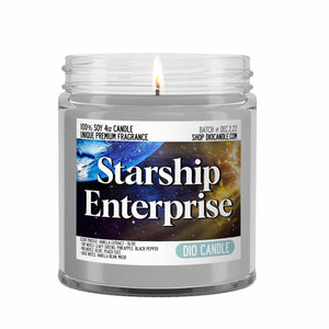 Embark on an intergalactic journey with the Starship Enterprise Candle. Its unique blend of exotic spices will tantalize your senses and transport you to new and exciting worlds. Feel the warmth of a distant star and treat yourself to a truly one-of-a-kind vanilla scent unlike anything you've experienced before!