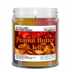 This Peanut Butter and Jelly Candle offers a unique scent experience with a blend of creamy peanut butter and two classic jelly flavors - grape and strawberry. Enjoy the inviting aromas without the mess of an actual PB&J sandwich.