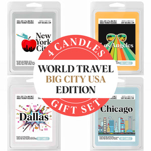 Embark on a cross-country journey without leaving the comfort of your home with our World Travel: Big City USA Candle Gift Set. This collection captures the essence of America's most iconic cities, each candle representing a unique blend of scents that define these vibrant metropolises: