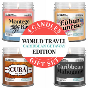 Escape to the tropical paradise of the Caribbean with our World Travel: Caribbean Getaway Candle Gift Set. This collection is a celebration of the vibrant culture, stunning beaches, and warm breezes of the Caribbean, with each candle capturing the essence of most idyllic islands: