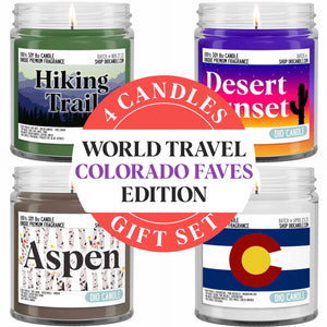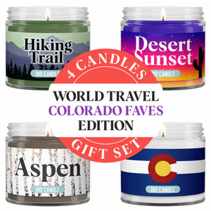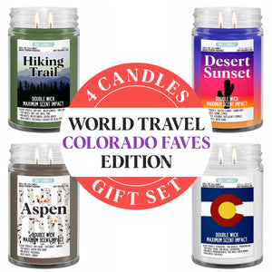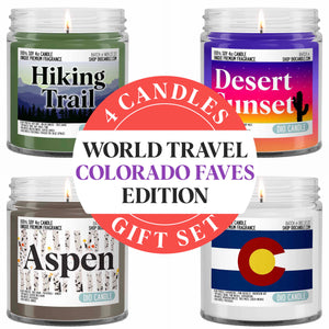 Explore the natural beauty and diverse landscapes of the Centennial State with our World Travel: Colorado Faves Candle Gift Set. This collection celebrates the essence of Colorado, with each candle capturing the unique spirit of this breathtaking region: