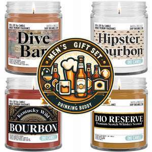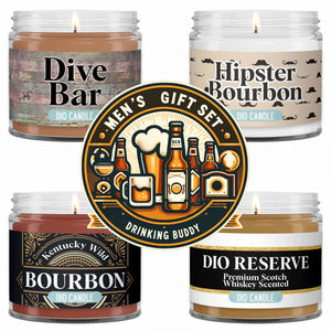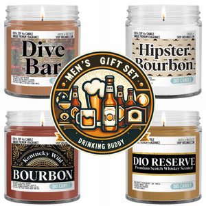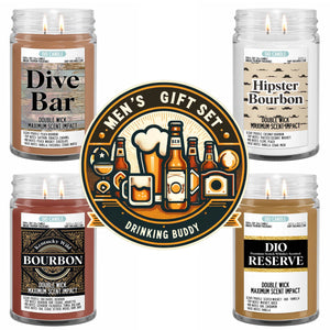 Celebrate the camaraderie and rich aromas of your favorite drinking memories with our Men's Drinking Buddy Candle Gift Set. This collection features four candles, each crafted to evoke the distinctive ambiance of beloved bars and bourbon houses. Perfect for those who appreciate the complex and comforting fragrances associated with a good drink, this set includes:
