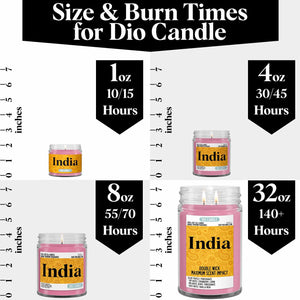 Welcome home India's vibrant, exotic culture with India Candle! Our luscious Pomegranate scent will brighten any room, filling it with a burst of fruity freshness. Its eye-catching sacred paisley label will add a touch of style and elegance to your home. Light up India Candle and bring the joy of summer into your life!