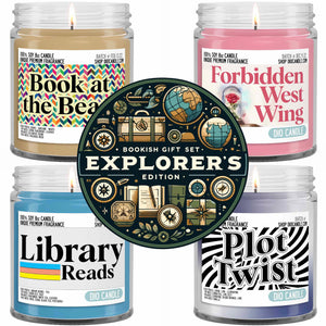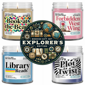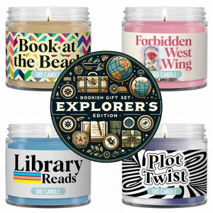 Embark on a literary adventure with our Bookish Gift Set: Explorer's Edition, featuring four candles inspired by the spirit of exploration and discovery found in beloved books. Each candle is designed to provide maximum scent impact, creating an immersive atmosphere that transports you to captivating worlds and thrilling narratives. Perfect for book lovers and adventurers alike, this set includes: