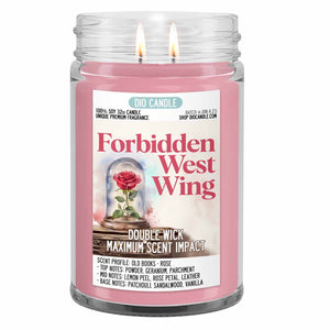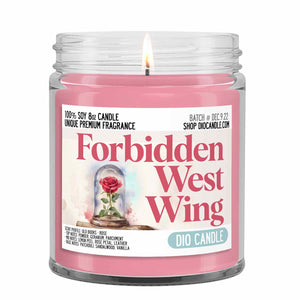 Indulge your love of books with the Forbidden West Wing Candle! Its unique blend of old parchment, leather binders, and delicate rose transports you to a magical library of stories waiting to be discovered. Let the alluring scent inspire a tale of beastly adventure and grandeur!