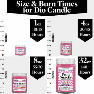 Experience the nostalgic aroma of classic fruit snacks with our Fruit Snacks Candle. Featuring a fruity blend of Strawberry, Banana, Peach, Raspberry, Apple and Melon, this unique candle provides a sweet, mouthwatering scent that will bring you back to your childhood.