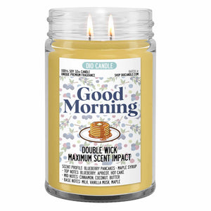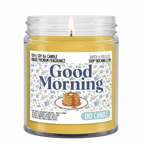 Welcome in the morning with the Good Morning Candle. Crafted with the scent of blueberry pancakes and maple syrup, this candle creates a sweet and inviting atmosphere. Enjoy the cozy feeling of waking up to the warm and inviting scent of breakfast.