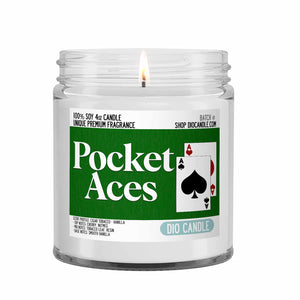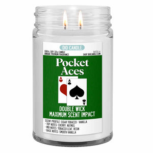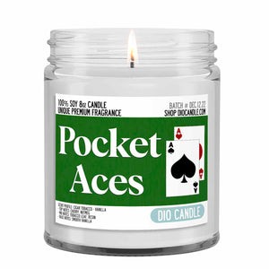 Discover the Pocket Aces Poker Candle and light a room with a sophisticated scent of smooth vanilla and tobacco. With a scent as exclusive as a winning hand, this candle brings a touch of luxury to your home.
