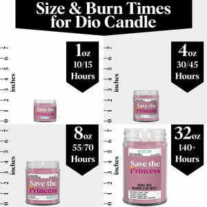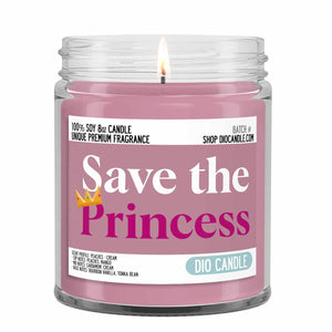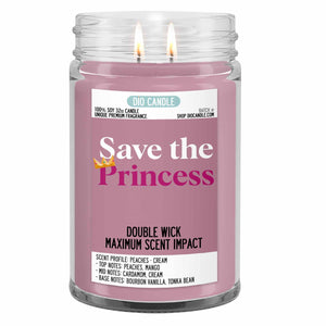 Light up your home with the majestic Save the Princess Candle! This unique candle is inspired by classic video games and is infused with the sumptuous scents of peaches and cream. Let these enchanting aromas whisk you away on a heroic journey to save the princess!