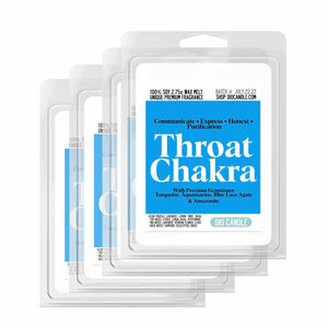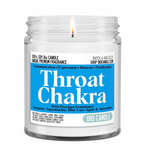 Experience spiritual cleansing and relaxation with Throat Chakra Crystal Candle, crafted with scented soy wax and moon-charged throat chakra gemstones. Highly fragrant, the candle provides an ambient, peaceful atmosphere made with intention. Transform any environment with this beautiful and aromatic candle.
