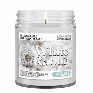 Entertain a whimsical tea party with the White Rabbit Candle! A delightful blend of cotton, carrot, and tea cakes fills the room with a enchanting aroma for a truly unique entertaining experience.